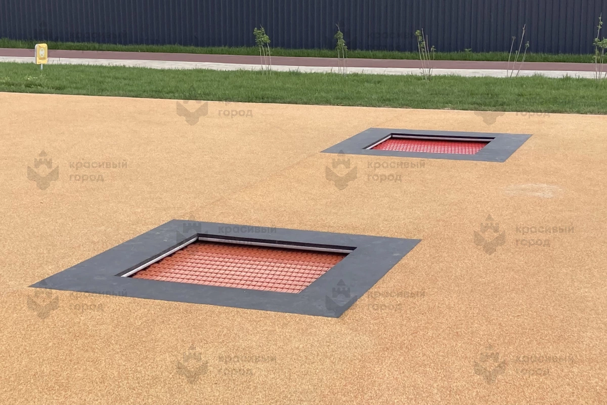 Для территорий с высокой проходимостью, где важны долговечность и минимизация рисков, лучше всего подойдет встраиваемый батут, который устанавливается вровень с поверхностью, не имеет высокой рамы и выглядит как часть ландшафта.