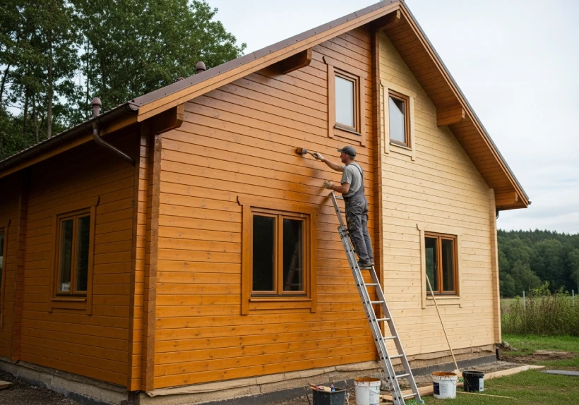 - Чем грозит: Влажность древесины должна быть не более 12-18%. Покраска по влажному дереву запечатывает влагу внутри, что неизбежно ведет к деформациям, трещинам, потемнению и гниению.