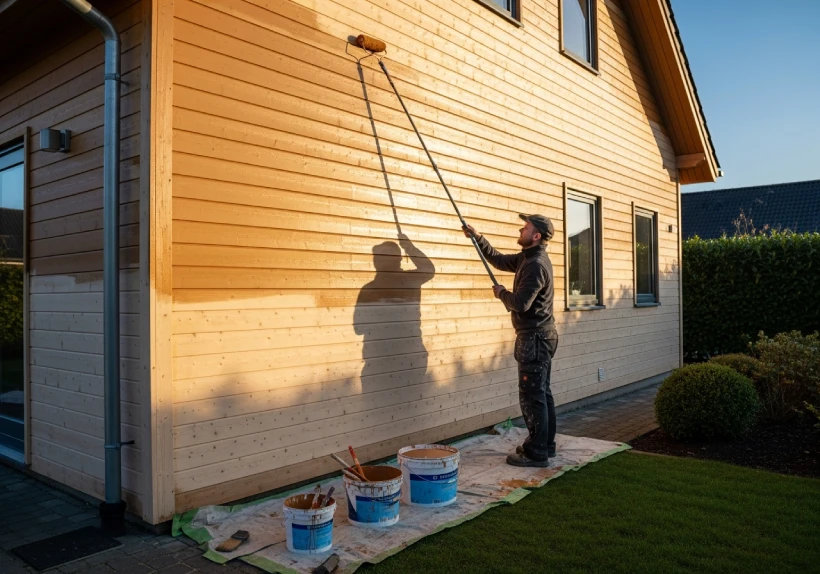 - Чем грозит: Использование недышащей краски создает «парниковый эффект»: влага из дома и дерева конденсируется под пленкой, что приводит к гниению. Несовместимость красок вызывает сворачивание и отслаивание. Отсутствие УФ-фильтров приводит к быстрому выцветанию.